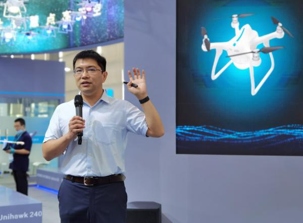齊俊桐致辭并對(duì)敏捷蜂Ⅱ型進(jìn)行精彩形象解讀,“自主化、智能化、集群化”將是無人機(jī)發(fā)展的趨勢。作為新一代集群表演無人機(jī)——敏捷蜂Ⅱ型的重磅首發(fā)是無人機(jī)集群控制技術(shù)領(lǐng)域的一次革命性升級(jí)。