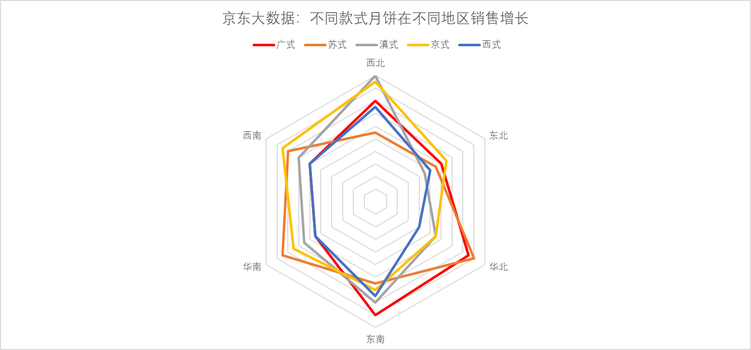 此前有報(bào)告顯示,消費(fèi)者購買月餅渠道更多樣化,已然形成線上為主、線下為輔的趨勢。而隨著京東渠道的滲透、物流的下沉,很多偏遠(yuǎn)地區(qū)的線上消費(fèi)比例也越來越大,比如西北地區(qū)消費(fèi)者購買廣式和京式月餅的同比增長分別達(dá)160%和190%,線上銷售的方式打破了區(qū)域間的地理限制,跨區(qū)域嘗鮮成為潮流,而且促進(jìn)了全國各地節(jié)( chi)日( huo)的交流。