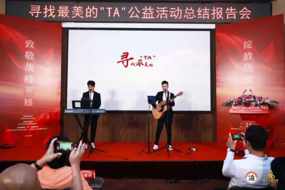 活動尾聲,會場響起一首滿懷敬意及祝愿的歌聲——尋找最美的“TA”公益活動主題曲《無名英雄》。這是由畢業(yè)于中國音樂學院并多次參演央視春晚、與郎朗同臺演奏的孫培軒與民謠吉他創(chuàng)作歌手強曉龍共同親情獻唱的原創(chuàng)戰(zhàn)疫歌曲,現(xiàn)場的各位嘉賓及觀眾無不感動,感謝無名的英雄們用那堅如磐石的雙肩,踐行著初心使命及鏗鏘有力的誓言。
