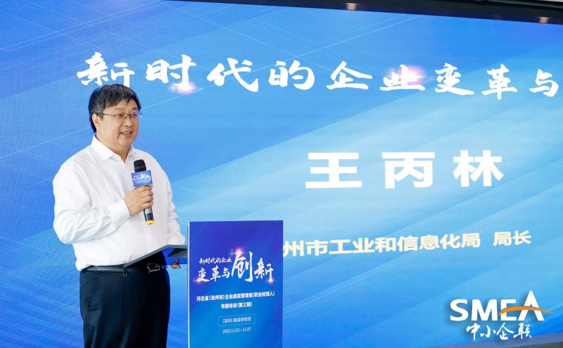 見圳客戶端·深圳新聞網(wǎng)2020年11月9日訊 近日,由河北省工業(yè)和信息化廳主辦,深圳市中小企業(yè)家聯(lián)誼會、深圳市中小企業(yè)產(chǎn)業(yè)創(chuàng)新協(xié)會、滄州市工業(yè)和信息化局承辦的“新時代的企業(yè)變革與創(chuàng)新——河北省中小企業(yè)高層經(jīng)營管理者(職業(yè)經(jīng)理人)專題培訓(xùn)(滄州班)”在深圳隆重開班。來自滄州市產(chǎn)業(yè)集群龍頭企業(yè)、優(yōu)秀民營企業(yè)、“專精特新”企業(yè)、培育擬上市企業(yè)的董事長、總經(jīng)理等共計56人參加培訓(xùn)。