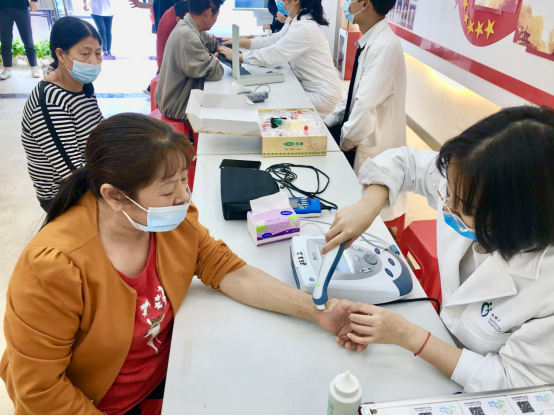 活動(dòng)現(xiàn)場(chǎng),社區(qū)居民聞?dòng)嵍?,向醫(yī)務(wù)工作人員咨詢各種保健知識(shí)和健康問題,通過測(cè)量血壓、中醫(yī)學(xué)全息四診(望、聞、問、切)等形式。