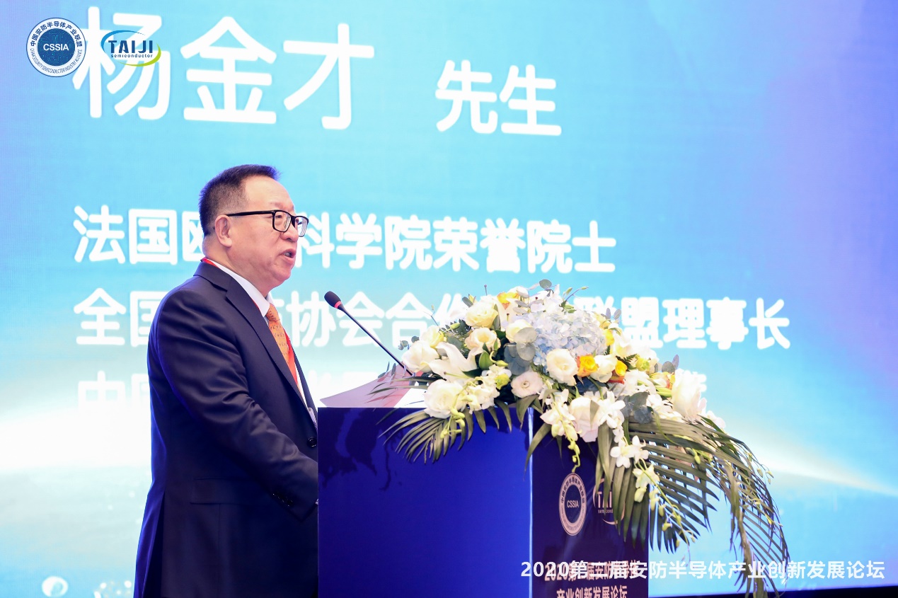 法國歐洲科學(xué)院榮譽院士、全國安防協(xié)會合作互助聯(lián)盟理事長、中國安防半導(dǎo)體產(chǎn)業(yè)聯(lián)盟主席楊金才致辭