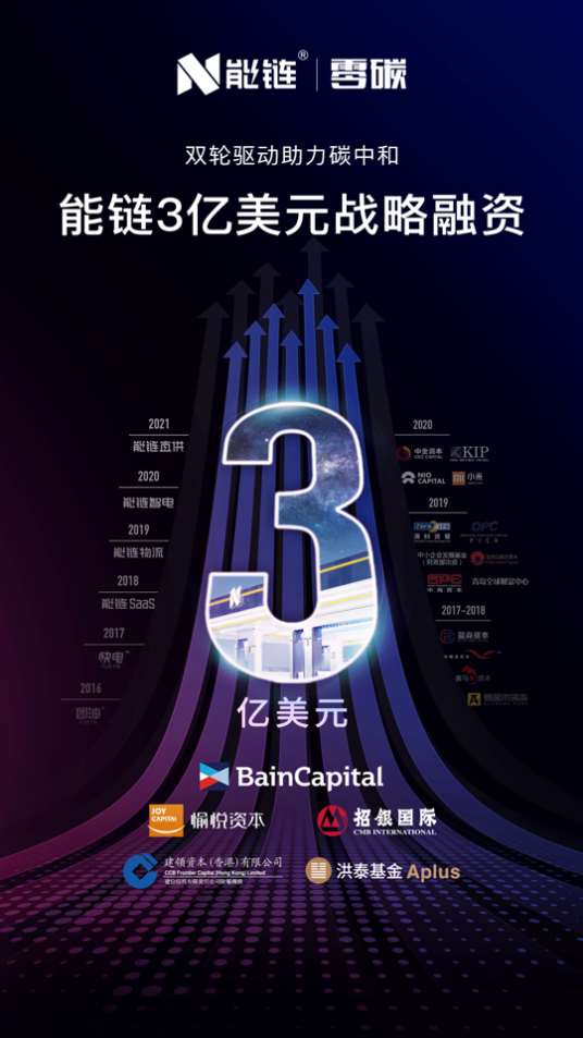 中國網(wǎng)2020年3月23日訊 昨日,能鏈宣布完成新一輪2億美元戰(zhàn)略融資,貝恩資本(Bain Capital)領(lǐng)投,老股東愉悅資本繼續(xù)跟投,華興資本擔(dān)任獨家財務(wù)顧問。綜合今年年初招銀國際領(lǐng)投的1億美元融資,能鏈本次戰(zhàn)略輪系列融資累計金額達(dá)3億美元。能鏈股東還包括中金資本、洪泰基金旗下國調(diào)洪泰、中小企業(yè)發(fā)展基金、小米集團(tuán)、蔚來資本、KIP中國等。