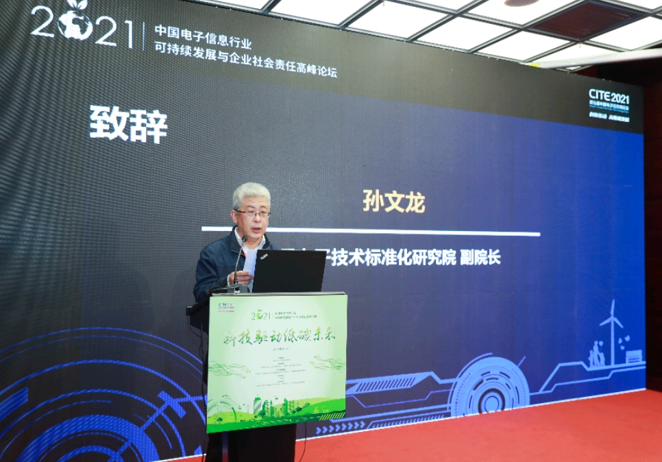 中國(guó)電子技術(shù)標(biāo)準(zhǔn)化研究院副院長(zhǎng)孫文龍?jiān)谥罗o中表示,打贏“碳達(dá)峰、碳中和”這場(chǎng)硬仗,需要各行各業(yè)積極探索綠色低碳發(fā)展路徑,更需要各行業(yè)企業(yè)繼續(xù)秉承新發(fā)展理念,更加自覺(jué)的履行綠色減碳責(zé)任。電子信息產(chǎn)業(yè)作為我國(guó)國(guó)民經(jīng)濟(jì)戰(zhàn)略性、基礎(chǔ)性和先導(dǎo)性支柱產(chǎn)業(yè),是全球創(chuàng)新最活躍、帶動(dòng)力最強(qiáng)、滲透性最廣的領(lǐng)域,不僅是綠色減碳的重要陣地,更是發(fā)揮自身強(qiáng)大科技創(chuàng)新優(yōu)勢(shì),驅(qū)動(dòng)國(guó)民經(jīng)濟(jì)綠色低碳發(fā)展,實(shí)現(xiàn)“碳達(dá)峰、碳中和”的中堅(jiān)力量。希望大家以高度的責(zé)任心和使命感,積極探索、加強(qiáng)合作、充分交流、暢所欲言,為綠色低碳化發(fā)展及其科學(xué)管理探道尋途,不斷把新時(shí)代電子信息行業(yè)社會(huì)責(zé)任治理水平和生態(tài)文明建設(shè)推向新的高度。