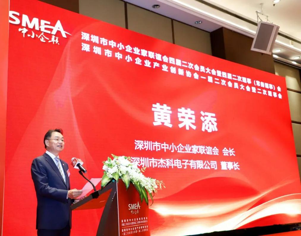深圳市中小企業(yè)家聯(lián)誼會(huì)會(huì)長(zhǎng)、深圳市杰科電子有限公司董事長(zhǎng)黃榮添在致辭中首先對(duì)長(zhǎng)期以來給予協(xié)會(huì)支持的各級(jí)領(lǐng)導(dǎo)、會(huì)員們表示衷心的感謝。深圳市中小企業(yè)家聯(lián)誼會(huì)自2010年9月20日成立以來,在市各級(jí)領(lǐng)導(dǎo)的指導(dǎo)和關(guān)懷下,已走過十年的歲月。深圳中小企聯(lián)感恩領(lǐng)導(dǎo)們的幫助與指導(dǎo),也感恩全體會(huì)員的信任與支持!黃會(huì)長(zhǎng)表示:深圳中小企聯(lián)要緊跟時(shí)代步伐,認(rèn)清當(dāng)前形勢(shì)與任務(wù)并對(duì)協(xié)會(huì)工作提出以下幾方面要求:第一、找準(zhǔn)定位,正確履行協(xié)會(huì)職能。第二、充分發(fā)揮政企溝通的橋梁紐帶作用。第三、加強(qiáng)內(nèi)外資源有效聯(lián)接,擴(kuò)大中小企聯(lián)平臺(tái)影響力。