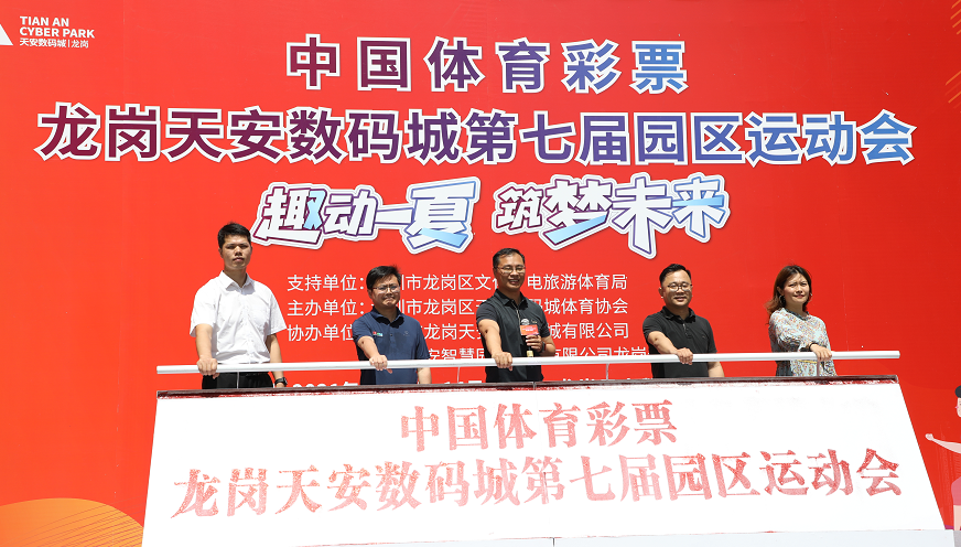 本屆運(yùn)動(dòng)會(huì)以“趣動(dòng)一夏筑夢(mèng)未來(lái)”為主題,由深圳市龍崗區(qū)文化廣電旅游體育局支持,深圳市龍崗區(qū)天安數(shù)碼城體育協(xié)會(huì)主辦,深圳市龍崗天安數(shù)碼新城有限公司、深圳天安智慧園區(qū)運(yùn)營(yíng)有限公司龍崗分公司協(xié)辦。深圳市龍崗區(qū)文化廣電旅游體育局副局長(zhǎng)李震、龍崗天安數(shù)碼城副總經(jīng)理陳文鑫、龍崗區(qū)文化廣電旅游體育局體育事業(yè)促進(jìn)科副科長(zhǎng)任翠華、天安智慧園區(qū)運(yùn)營(yíng)有限公司總經(jīng)理助理龍崗分公司總經(jīng)理梁義榮、龍崗天安數(shù)碼城產(chǎn)業(yè)事業(yè)部總監(jiān)白麗等領(lǐng)導(dǎo)嘉賓為本屆運(yùn)動(dòng)會(huì)推桿啟動(dòng)開幕。