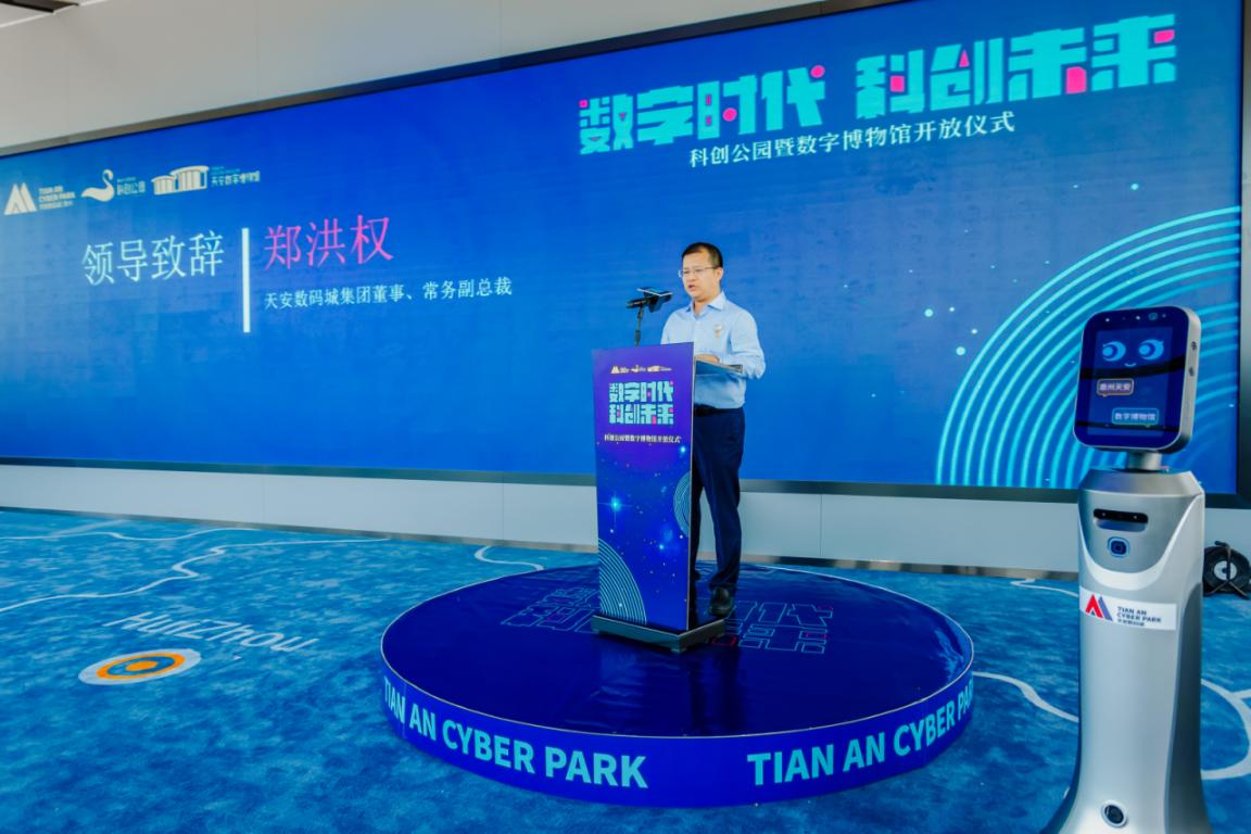 活動開場,天安數(shù)碼城集團董事、常務(wù)副總裁鄭洪權(quán)致歡迎辭。鄭權(quán)表示,惠州天安數(shù)碼城科創(chuàng)公園與數(shù)字博物館的建設(shè),是順應(yīng)數(shù)字化、網(wǎng)絡(luò)化、智能化融合發(fā)展新趨勢,推動智慧城市發(fā)展和智慧產(chǎn)業(yè)生態(tài)體系建設(shè)效應(yīng)的呈現(xiàn)?;葜萏彀矓?shù)碼城將緊抓惠州蝶變的關(guān)鍵時機,圍繞“科學(xué)科技科普科幻科創(chuàng)科研科教”七科立園,深度融入省“一核一帶一區(qū)”區(qū)域發(fā)展格局,用集團具有生命力和成長性的運營體系,適配惠州城市發(fā)展模式,打造具有惠州產(chǎn)業(yè)基礎(chǔ)特色的產(chǎn)業(yè)園區(qū),以企業(yè)的發(fā)展,促進產(chǎn)業(yè)的優(yōu)化和城市的進化,攜手政府、企業(yè)、社區(qū)一同打造充滿生機和無限科技想象的科技園區(qū)。