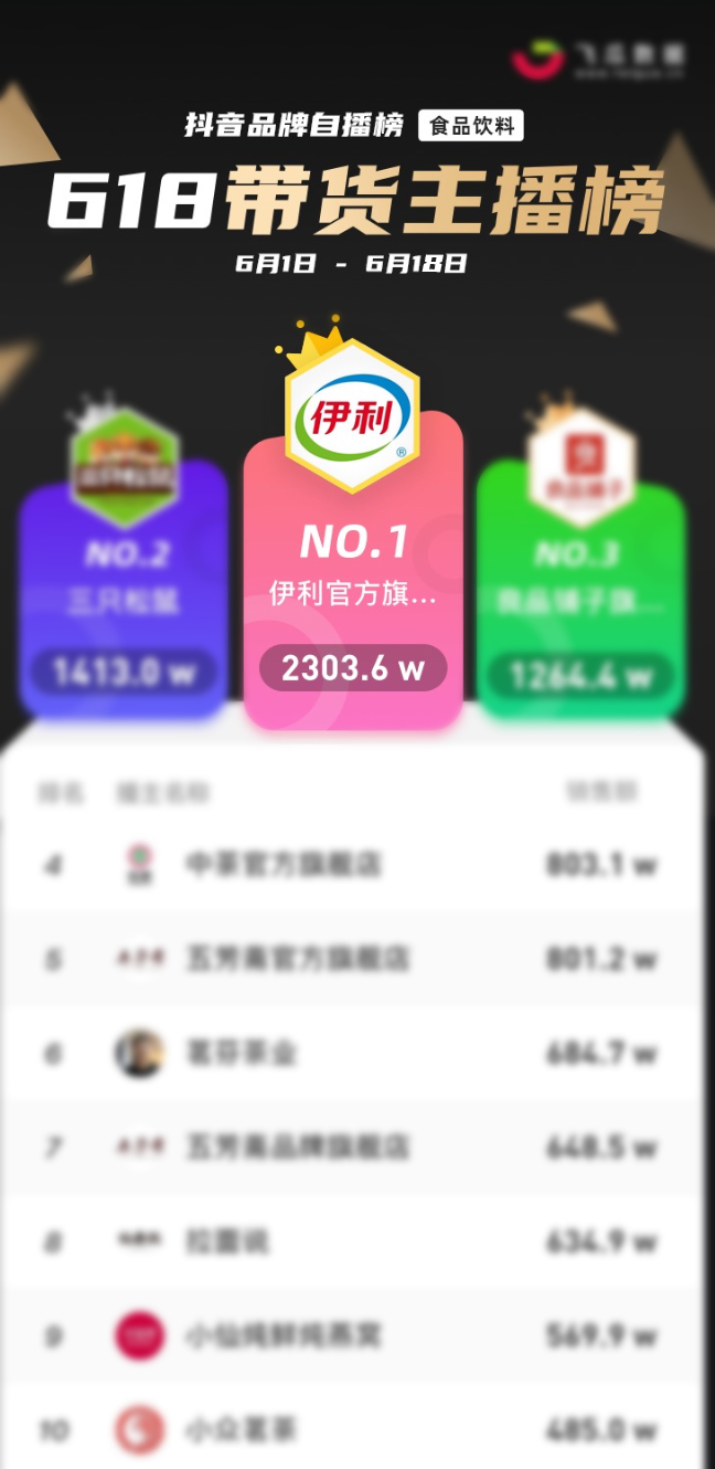 安慕希打造首個抖音乳品狂歡日,伊利品牌位居當(dāng)日食品飲料榜 TOP1