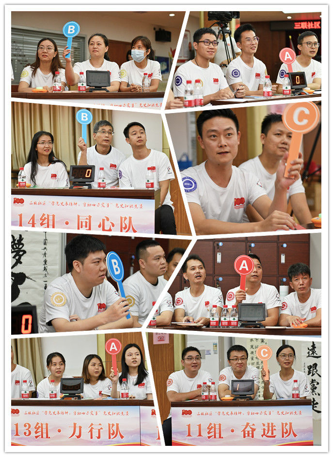 此次比賽分為初賽和決賽兩個(gè)階段,初賽為兩兩PK晉級(jí)制,來(lái)自社區(qū)黨委下屬各黨支部、轄區(qū)各共建單位等組成的14支代表隊(duì)分七組進(jìn)行了激烈的角逐,最終7支隊(duì)伍脫穎而出,登上決賽擂臺(tái)。