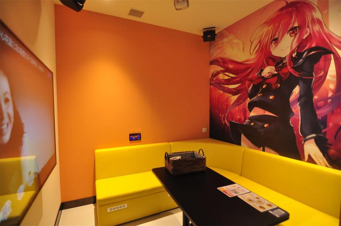 KARAOKE區(qū)域,卡拉OK包廂設(shè)有動漫、和風、美式風等不同主題背景,客人可以按照個人喜好或心情選擇喜歡的房間。不同包廂有著風格各異的投影和舞臺,這里也可以舉辦生日會和公司社員團建活動。飲食區(qū)提供的披薩、熱狗、意大利面等小食和飲料都可以帶進包廂,讓邊吃著美食邊舉行派對成為現(xiàn)實。