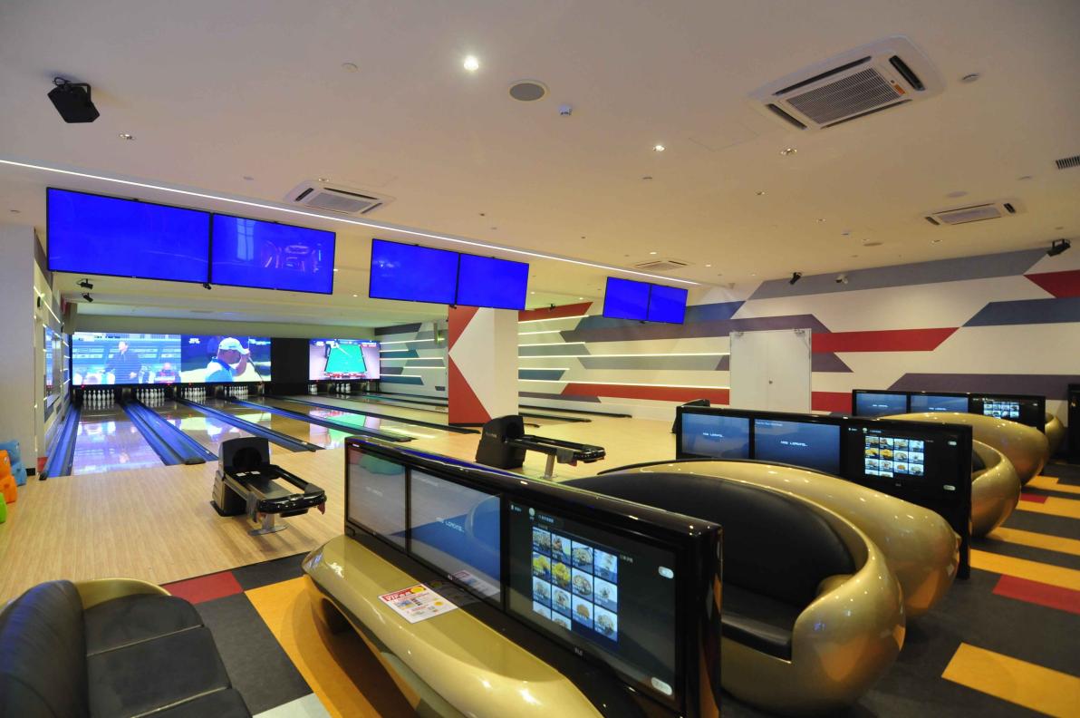 保齡球區(qū)域,朗玩的保齡球采用了美國Brunswick公司最新的保齡球機。在放置保齡球瓶的上方墻面上,設(shè)置了放映各種運動、音樂節(jié)目的大屏幕。四周設(shè)有的攝像鏡頭能夠全方位捕捉玩家們投球瞬間,在大屏幕上可以看到這些精彩瞬間。采用了鐳射光線等技術(shù)的華麗活動(月光投球游戲)每小時都會進行一次,閃耀炫酷的設(shè)計會顛覆玩家們一直以來對于保齡球的認知!