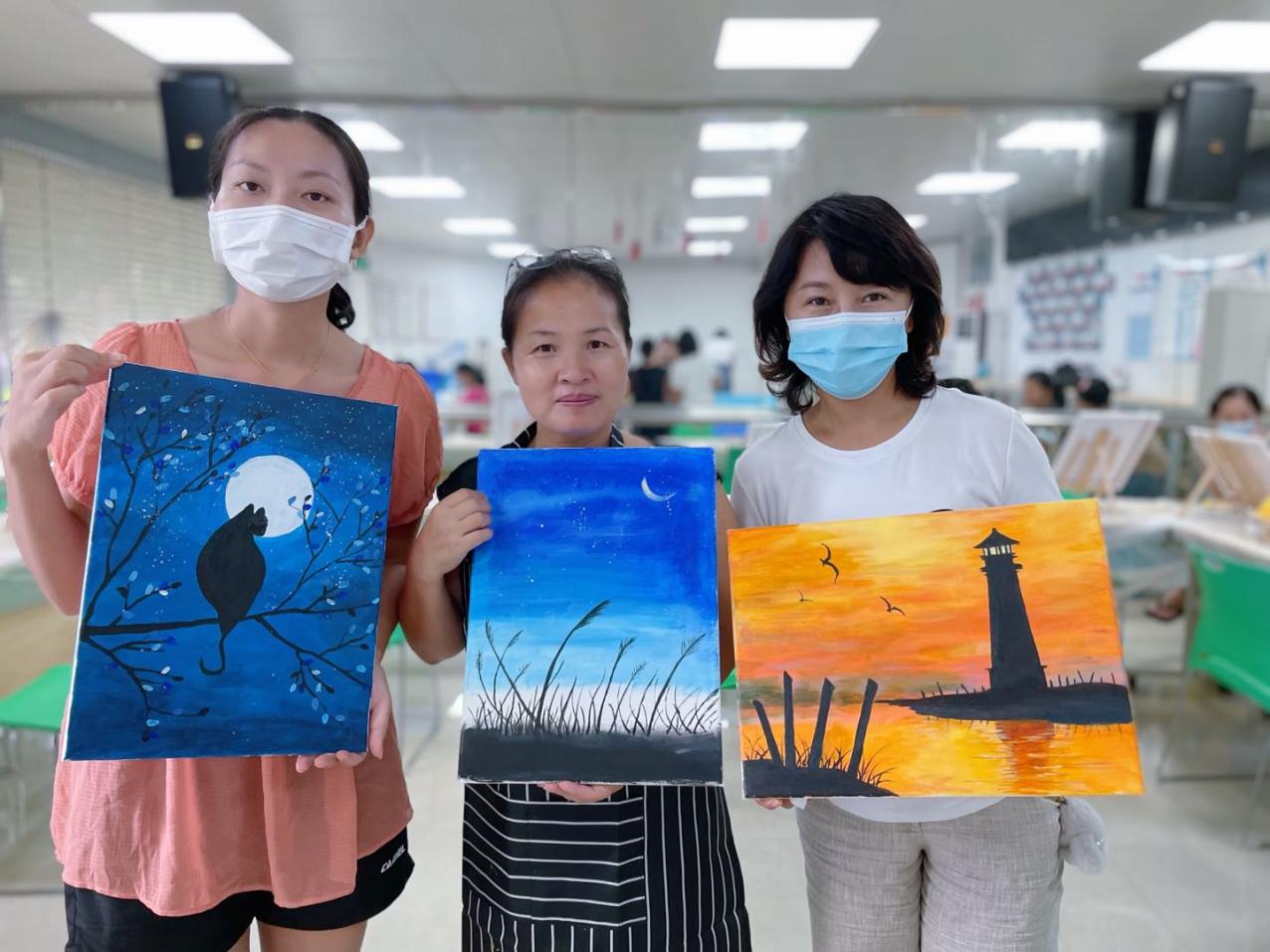 溫馨的環(huán)境,融洽的氣氛,專業(yè)的老師,友好的同伴,媽媽們度過了一個個美好的下午。盡管媽媽們都是零基礎,但全情投入的專注,不僅釋放了壓力,更是打開了一扇通往油畫藝術的小窗。愛自己,愛生活,才能更好地愛家人,本次油畫班持續(xù)開展約兩個多月,媽媽們更好地享受屬于自己的油畫時間,學有所獲。