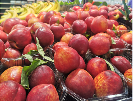 記者走訪本市一家家樂(lè)福門店,看到店里水果不僅種類齊全,而且價(jià)格親民,“ 安徽油桃剛上市不久,目前有70g和100g兩種規(guī)格, ” 一名銷售人員介紹。