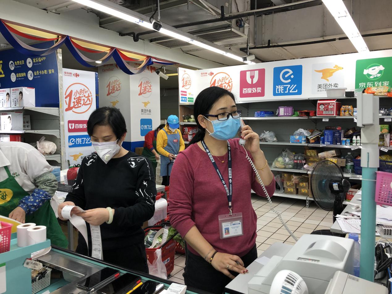 2月13日下午,宅家半個(gè)月的陳翠姣終于重新“上崗”了,不過崗位卻有了微妙的變化。她本是探魚餐廳的一名訓(xùn)練員,今天卻在蘇寧家樂福深圳中心城店進(jìn)行收銀員的上崗培訓(xùn)。