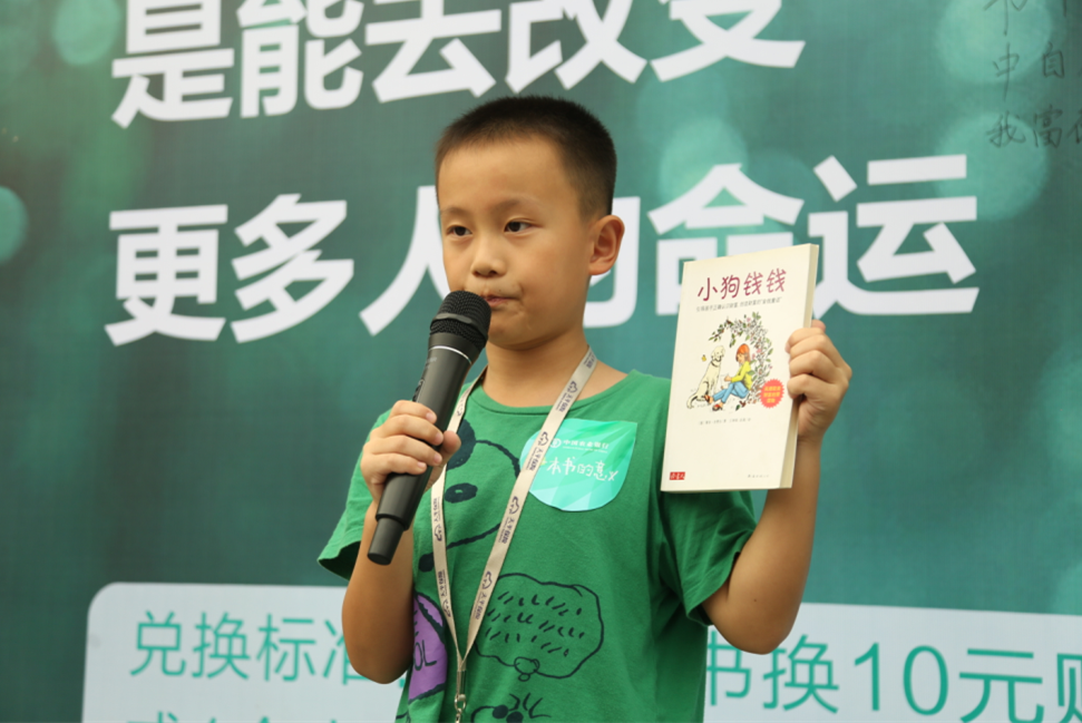 本次活動(dòng)受到了社會(huì)各界的熱烈響應(yīng),錦田小學(xué)的30余位家長和學(xué)生更是組團(tuán)來到現(xiàn)場,他們不僅帶來了近400本優(yōu)質(zhì)少兒讀物并全部捐獻(xiàn)出來,而且還帶來了精彩的圖書分享會(huì)。記者在現(xiàn)場看到,錦田小學(xué)的小朋友們在換書間隙,紛紛登上舞臺(tái)與大家分享自己喜愛的書籍和感悟,并繪聲繪色地講述書籍中精彩的部分。李博恒小朋友更是給大家分享了一本叫做《小狗錢錢》的書,書中指出了一些孩子理財(cái)?shù)男》椒ǎ⌒∧昙o(jì)閱讀涉獵范圍就很廣,令家長們贊嘆不已。