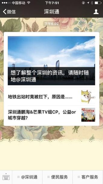 深圳新聞網(wǎng)6月7日訊 近日深圳通微信公眾號正式入駐城市級自媒體內(nèi)容平臺“@深圳”?!癅深圳”平臺將開設(shè)“@深圳通”頻道,為廣大市民提供與“深圳通”息息相關(guān)的新聞資訊。這是繼國內(nèi)首個城市級自媒體內(nèi)容平臺“@深圳”上線以來,又一入駐的官方微信。