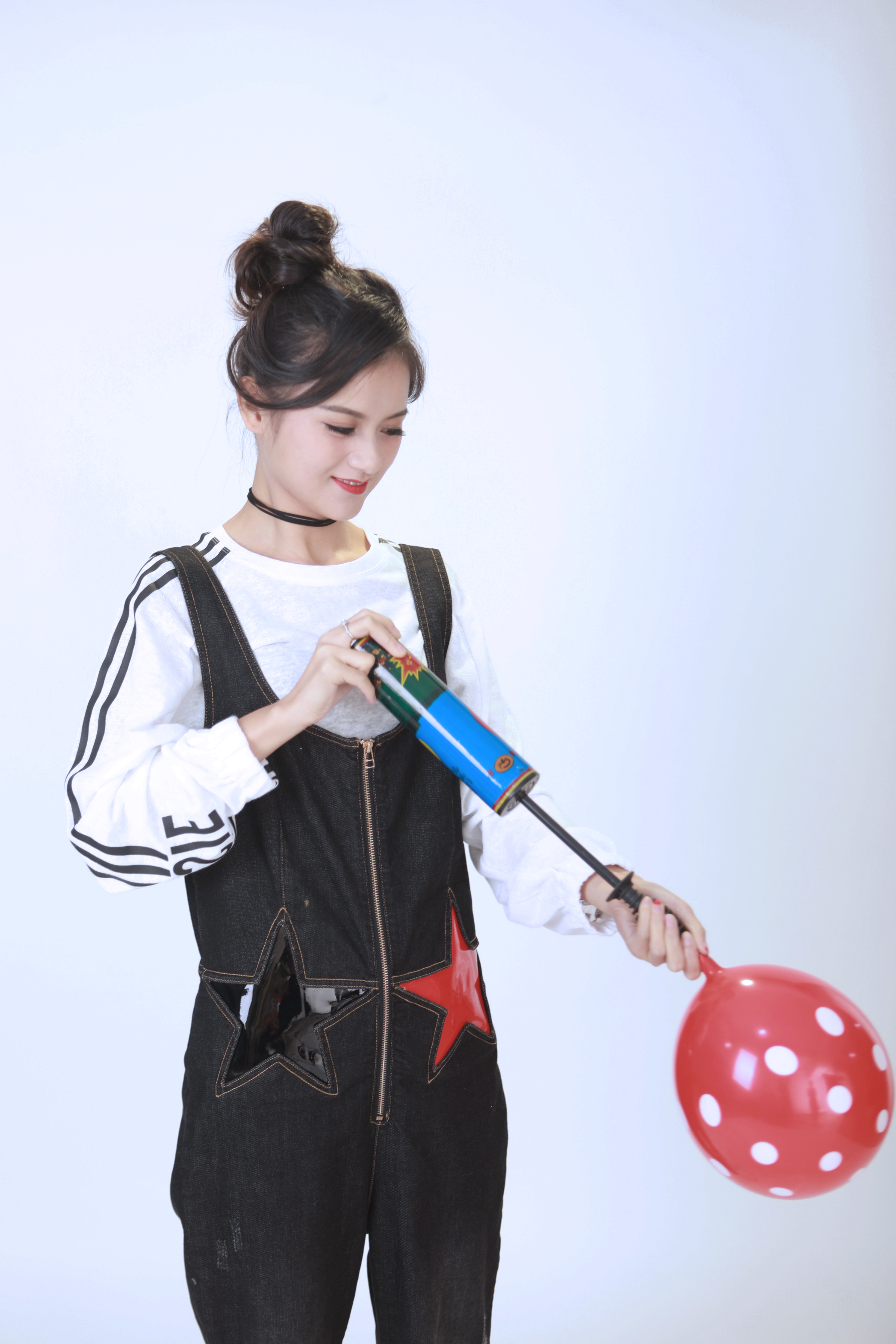 改造后的曉敏小仙女,高高的丸子頭顯得元?dú)鉂M滿,西瓜紅色系腮紅和唇色少女感滿分,搭配俏皮的背帶褲,我也好想和曉敏一起玩耍喲。