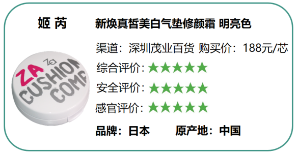 (四)感官評(píng)價(jià)結(jié)果:姬芮新煥真皙美白氣墊修顏霜和雪花秀采淡致美氣墊粉底液綜合表現(xiàn)最好。
