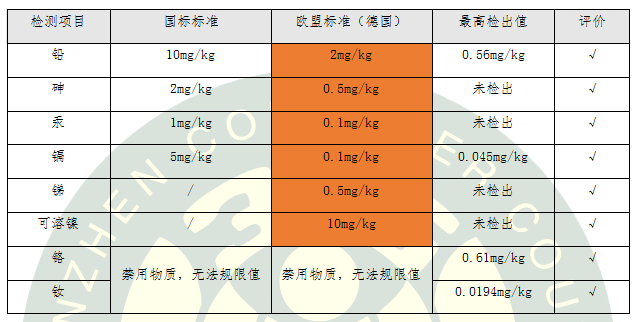 檢測(cè)結(jié)果顯示:對(duì)于有限量要求的重金屬,8款氣墊粉底均滿足國(guó)標(biāo)和歐盟最嚴(yán)格的限值要求;對(duì)于沒(méi)有限量要求的重金屬鉻和釹,也滿足在正常的,或合理預(yù)見(jiàn)的使用條件下不對(duì)人會(huì)體造成危害。