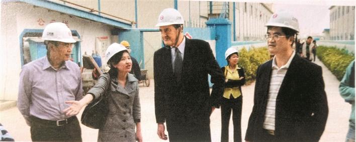 柯剛明(右一)陪同國際大體聯(lián)官員考察大運村建設(shè)。圖片由受訪者提供