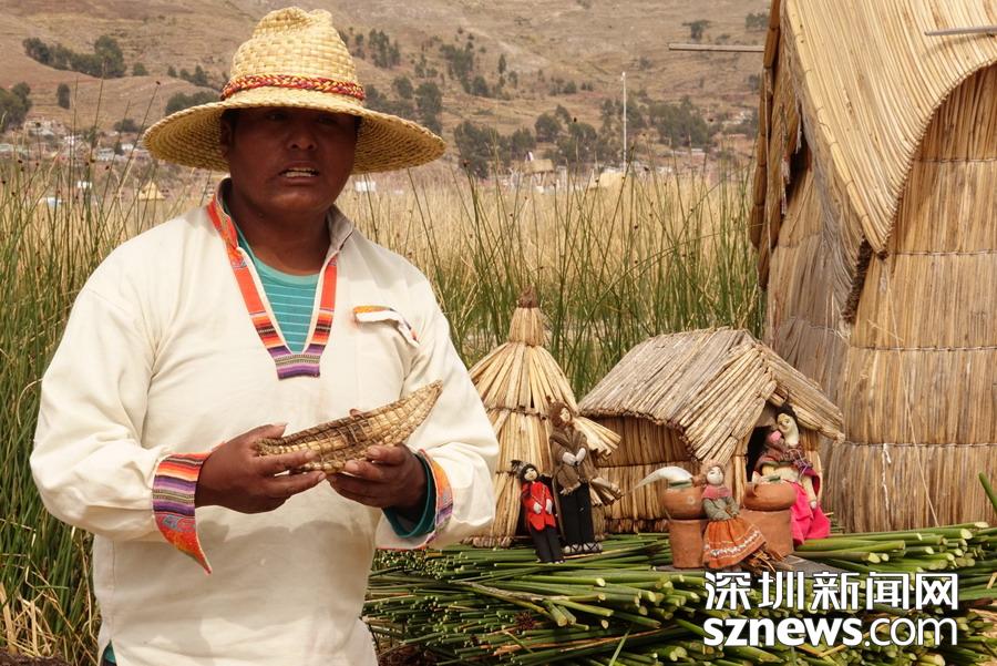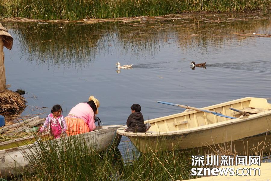 早至遠(yuǎn)古,印第安人用香蒲編成小舟或筏子,下湖捕魚。湖中還有幾十個印第安人烏羅族居住的“漂浮島”,它們是用香蒲在湖面堆集而成的人工島,島上的居民都以捕魚為生。李仁奇 攝