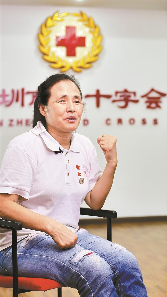 1997年,我從濟(jì)南市商河縣的農(nóng)村來到深圳,幫妹妹照看孩子。一次偶然的機(jī)會,我看到路邊一輛無償獻(xiàn)血車,車上寫著缺A、B、O型血,這讓我想起了小時(shí)候看過的小人書,白求恩大夫獻(xiàn)出300毫升鮮血挽救了八路軍傷員的生命,心想現(xiàn)在自己也有機(jī)會通過獻(xiàn)血去救助危重的病人,真的太好了。漸漸地,我成了深圳市紅十字會的“??汀保渤闪松钲谑屑t十字會的志愿者。至今,我志愿服務(wù)時(shí)間近6萬小時(shí),無償獻(xiàn)血316次。