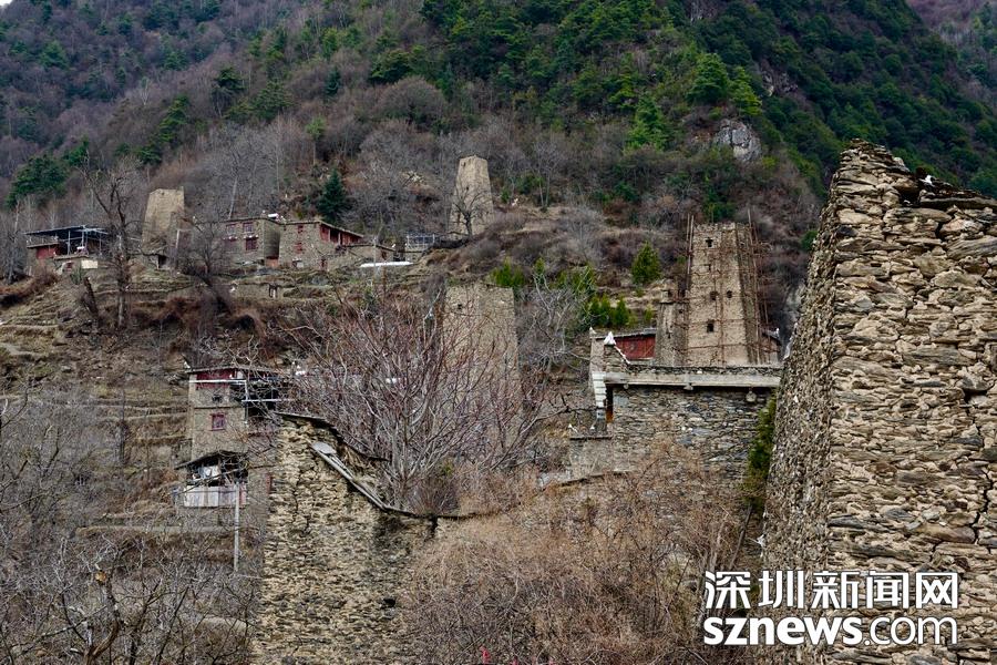 寨內(nèi)的巨大碉樓,雄渾挺拔,屹立于比肩走袂的村寨中,高高低低,從數(shù)米到數(shù)十米,建筑形式有四、六、八角,以土、石、麻筋、木為料,有的僅用土木。李仁奇 攝