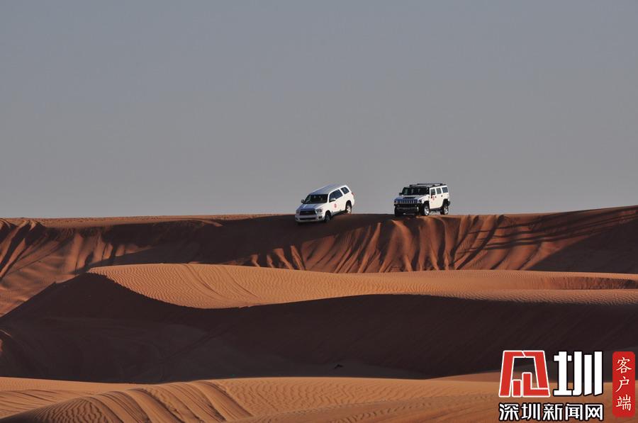 隨著越野車內(nèi)的驚聲尖叫,駕駛員已加大油門沖上前方的沙丘,高度不斷增加,坡度也越來越大,有時會達到六七十度,就在感覺車幾乎要翻的時候,突然整個身體失重,隨著陣陣尖叫,每個人都緊緊抓死把手,當(dāng)你落到座位上坐穩(wěn)時,才反應(yīng)過來越野車已從很高的沙丘上俯沖了下來!李仁奇攝