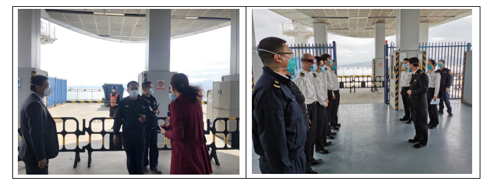 港口各級(jí)干部員工勇于擔(dān)當(dāng)、迎難而上,勠力同心、眾志成城,共同筑牢嚴(yán)防疫情輸入的堅(jiān)強(qiáng)防線,用實(shí)際行動(dòng)詮釋了“牢記使命勇?lián)?dāng)”。蛇口郵輪母港呂如福常務(wù)副總經(jīng)理與港口運(yùn)營中心林麗華總經(jīng)理連夜開會(huì)部署至深夜,第二天仍早早趕到現(xiàn)場與聯(lián)檢單位共同查勘旅客動(dòng)線;賴乙海總監(jiān)接到航班通知后,放棄值班休息第一時(shí)間趕到現(xiàn)場布置各項(xiàng)保障任務(wù),并親自為一線員工穿戴防護(hù)用品;港口一線員工面對(duì)夜間加開航班旅客人數(shù)多且有發(fā)燒旅客的情況,毫不退縮、沖鋒在前,順利完成保障任務(wù),一直到深夜客船和旅客動(dòng)線消毒清場完畢才下班。