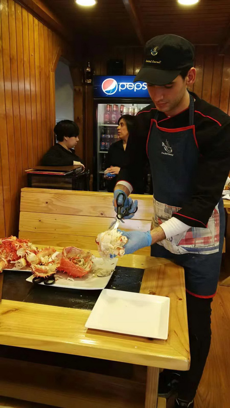 蜘蛛蟹(又名皇帝蟹)只產(chǎn)于南北兩極冰冷的海洋中,大個(gè)的重量可達(dá)5公斤以上。資深旅游者大多知道美國阿拉斯加的蜘蛛蟹是當(dāng)?shù)靥禺a(chǎn)美味,但很多人并不了解智利、阿根廷接近南極洲的海域有比阿拉斯加蜘蛛蟹更大、味道更好、價(jià)格更低的同類海產(chǎn)品。李仁奇攝
