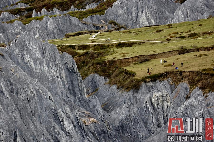 它是3年前開(kāi)發(fā)建成的網(wǎng)紅景點(diǎn),全世界獨(dú)有的糜棱巖石林,面積4.7平方公里,海拔約3500米,被命名為“中國(guó)墨石公園”。李仁奇 攝