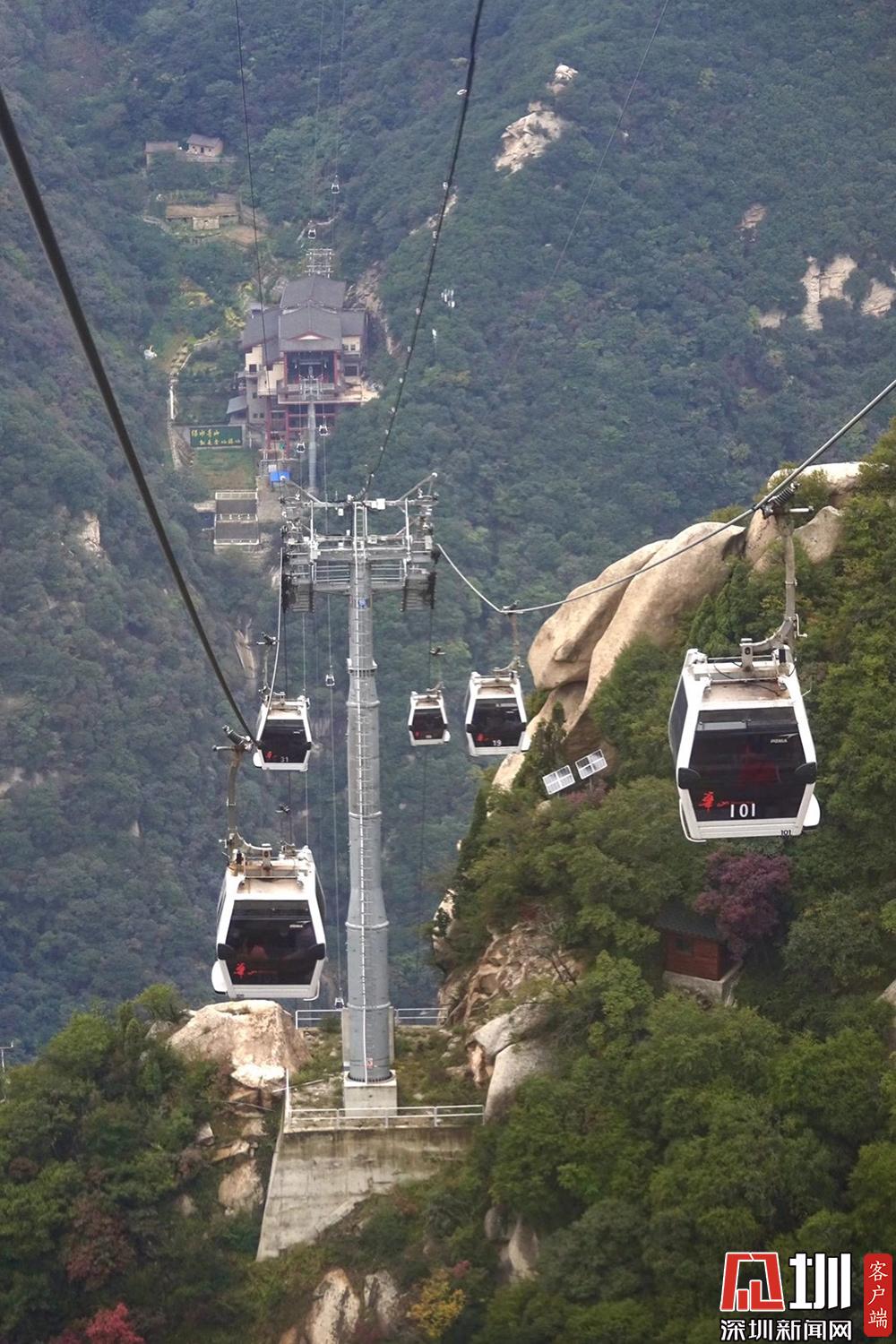 索道設(shè)備由法國(guó)波馬公司制造,整體安全與運(yùn)營(yíng)系統(tǒng)采用最尖端的客運(yùn)索道技術(shù)。華山索道一覽。李仁奇攝。