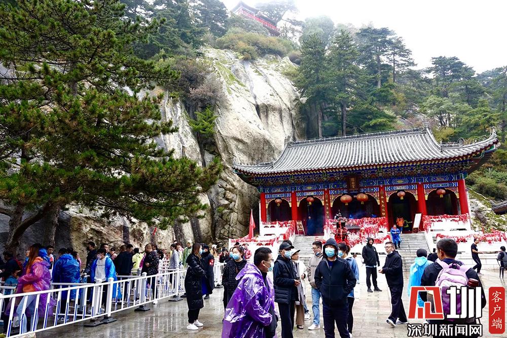 華山是道教主流全真派圣地,為“第四洞天”,也是中國民間廣泛崇奉的神祇,即西岳華山君神。排隊等待參觀的游客。李仁奇攝。