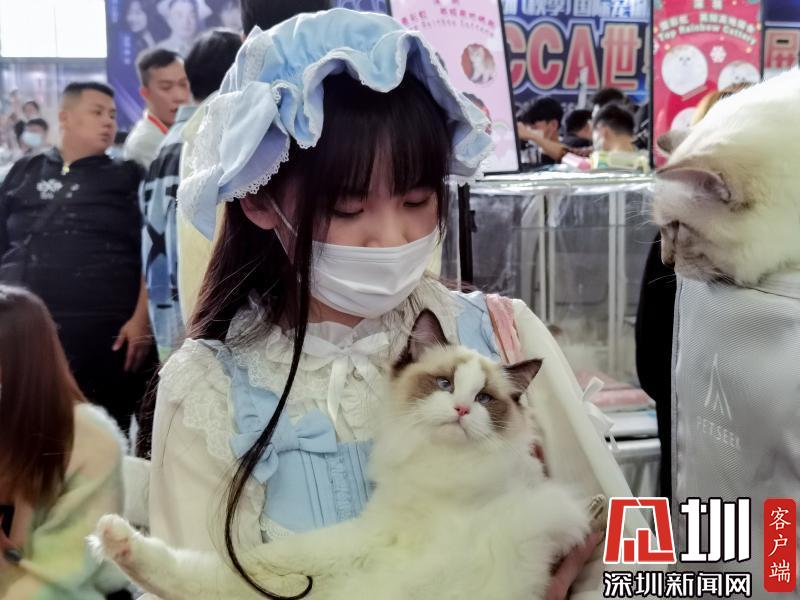 觀眾帶著寵物貓一起逛展。
