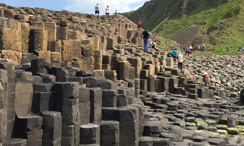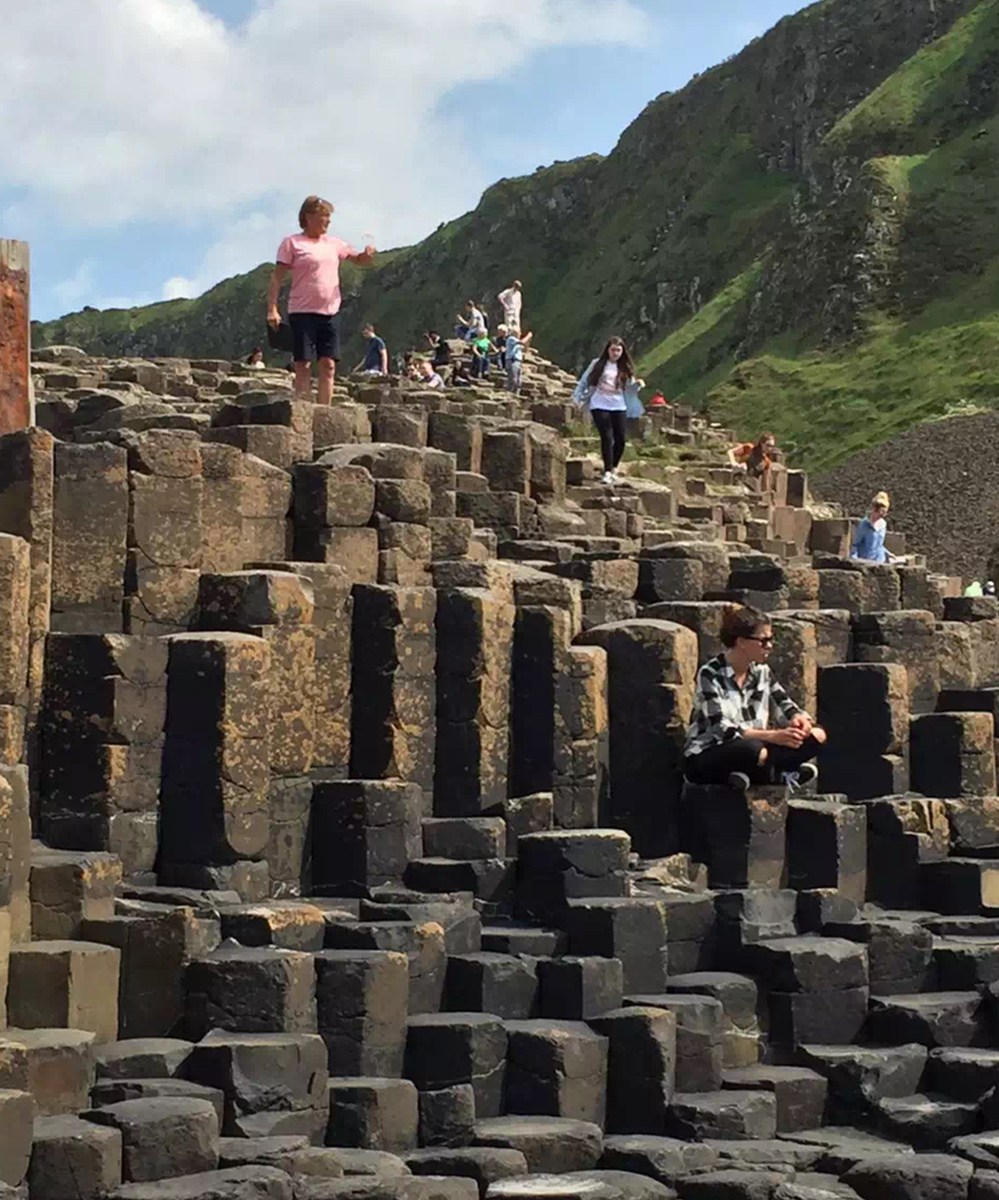 約五千萬年前,在今天蘇格蘭西部?jī)?nèi)赫布里底群島一線至北愛爾蘭東部火山非?;钴S,一股股玄武巖巖熔流從裂隙的地殼中涌出,隨著灼熱的熔巖冷卻收縮,結(jié)晶的時(shí)候,開始爆裂呈規(guī)則的六邊形形態(tài)。李仁奇 攝