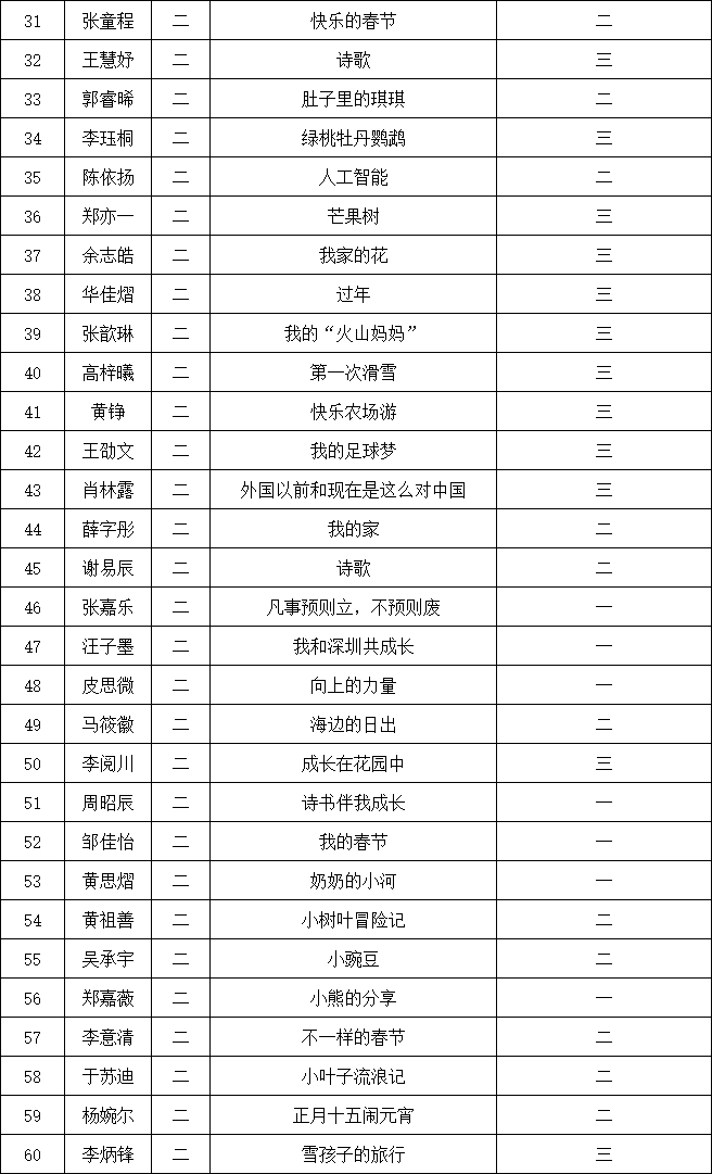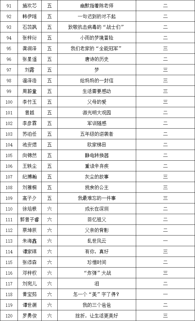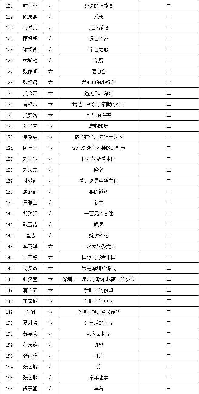 自2021年1月,活動征稿啟動以來,獲得了深圳市廣大中小學(xué)生、教師、文學(xué)愛好者的熱烈響應(yīng)積極參與,吸引了深圳百余所學(xué)校的上萬人關(guān)注報(bào)名?,F(xiàn)公布南山實(shí)驗(yàn)教育集團(tuán)前海港灣學(xué)校校園專場晉級復(fù)賽名單如下:
