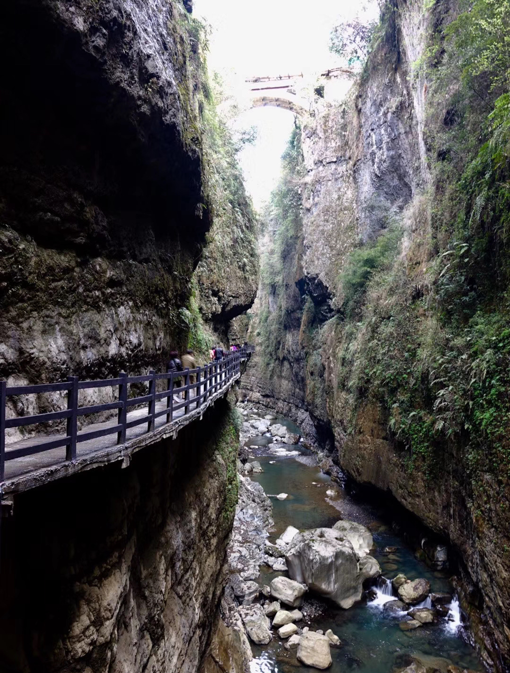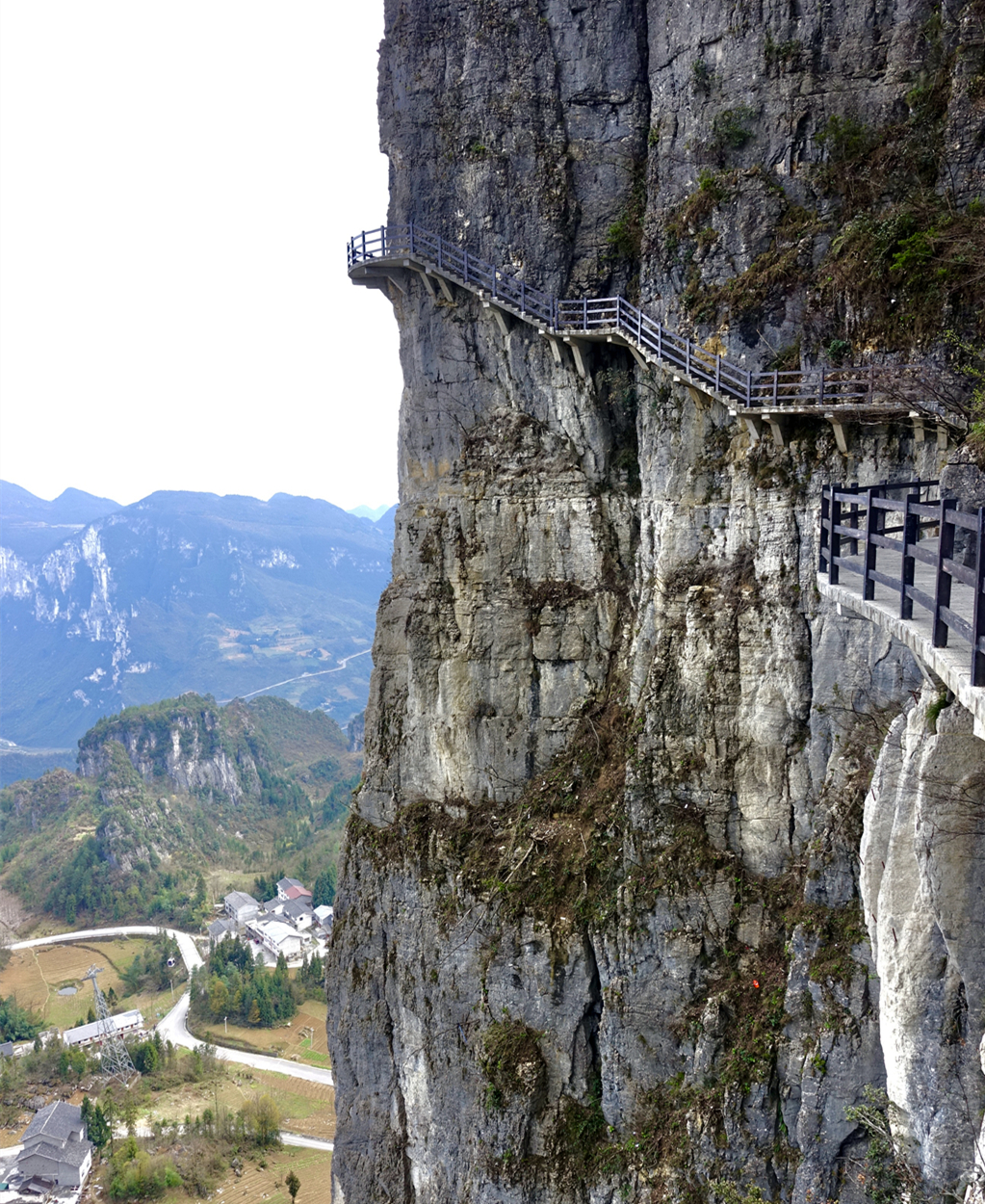 棧道橫掛在海拔約1700米、凈高約300米的絕壁間,往下看異常驚險,往上看則嘆為觀止。李仁奇 攝