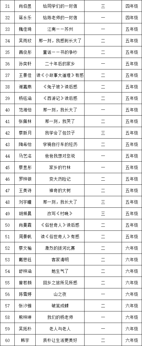 自2021年1月,活動(dòng)征稿啟動(dòng)以來(lái),獲得了深圳市廣大中小學(xué)生、教師、文學(xué)愛(ài)好者的熱烈響應(yīng)積極參與,吸引了深圳百余所學(xué)校的上萬(wàn)人關(guān)注報(bào)名?,F(xiàn)公布深圳市光明區(qū)鳳凰學(xué)校專場(chǎng)晉級(jí)復(fù)賽名單如下: