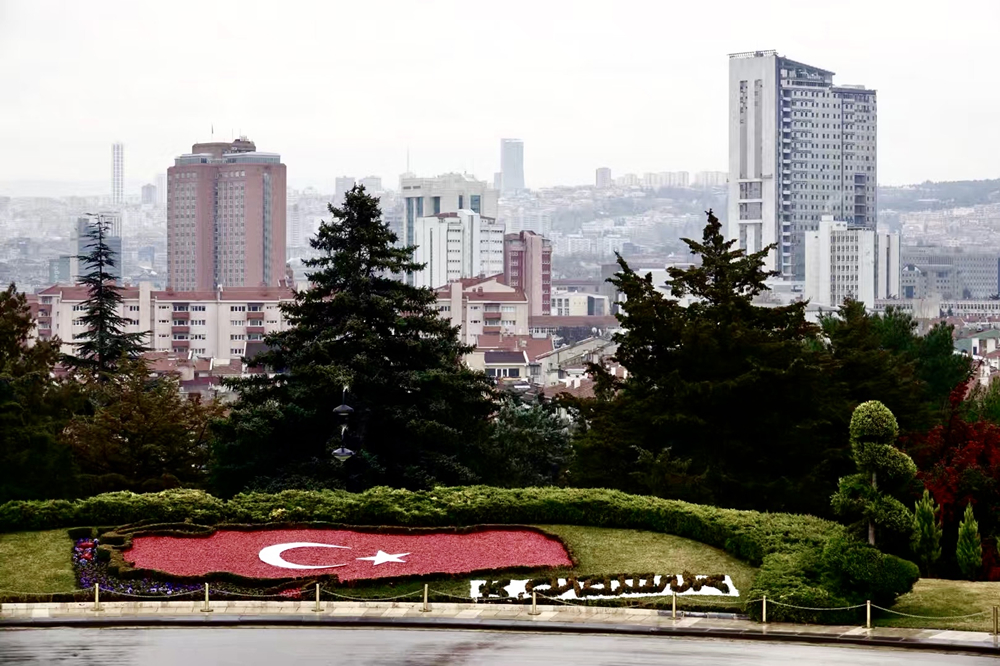 國(guó)父紀(jì)念館正門(mén)對(duì)面有個(gè)用獻(xiàn)花組成的土耳其國(guó)旗花壇。李仁奇 攝