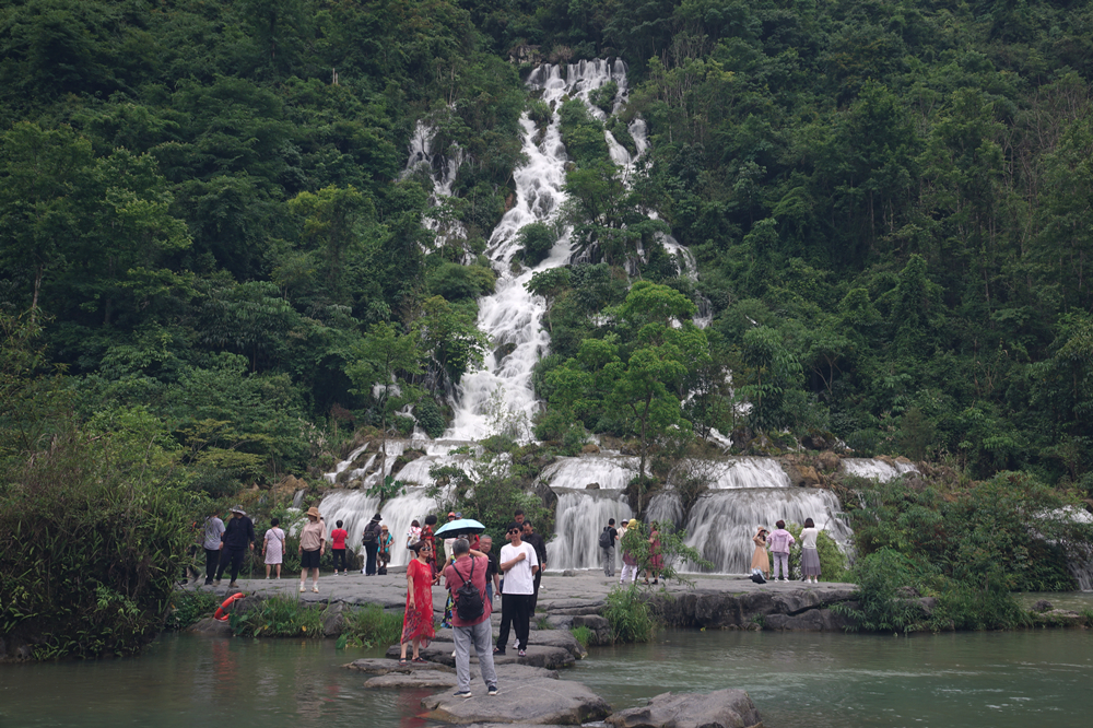 翠谷瀑布,因群峰緊鎖,群山蒼翠欲滴,故名“翠谷”。翠谷瀑布懸于群山之腰,是小七孔景區(qū)落差最大的瀑布。李仁奇 攝