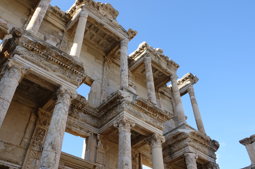 圖書館正面底層擺放著四尊希臘女神的雕像,從左到右分別是仁慈、思想、學(xué)識(shí)和智慧女神。李仁奇 攝