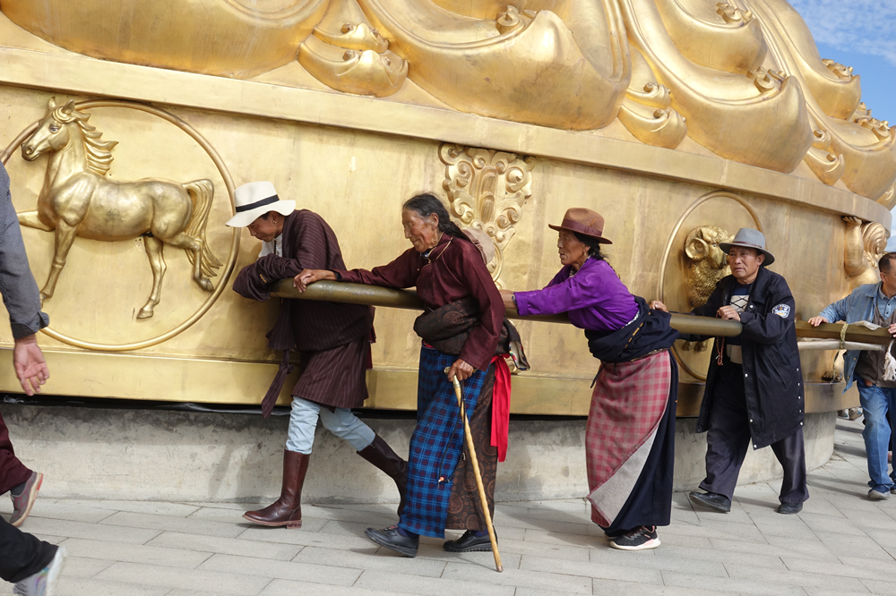 隨著我國(guó)藏傳佛教信徒聚居區(qū)經(jīng)濟(jì)社會(huì)的發(fā)展,從2009年起,在云南、青海、四川、甘肅四省先后建起了5座領(lǐng)先一時(shí)的“世界最大轉(zhuǎn)經(jīng)筒”。李仁奇 攝