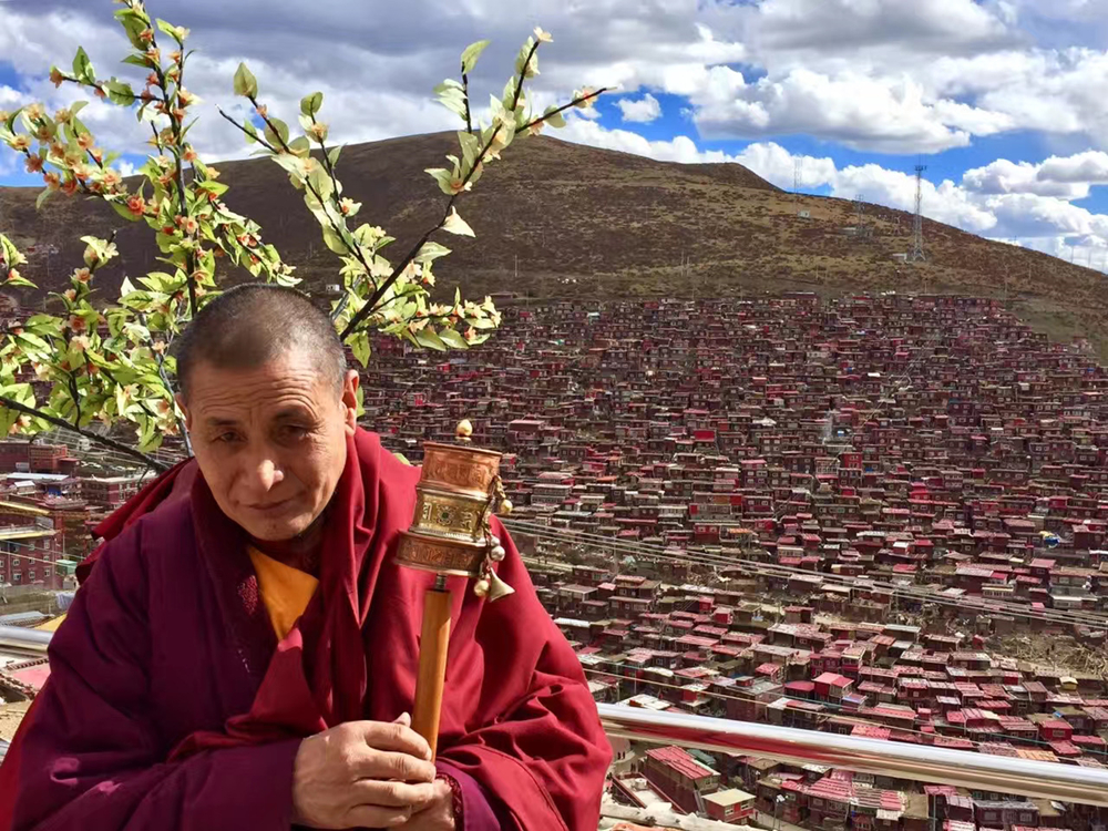 手持小轉(zhuǎn)經(jīng)筒的喇嘛。李仁奇 攝