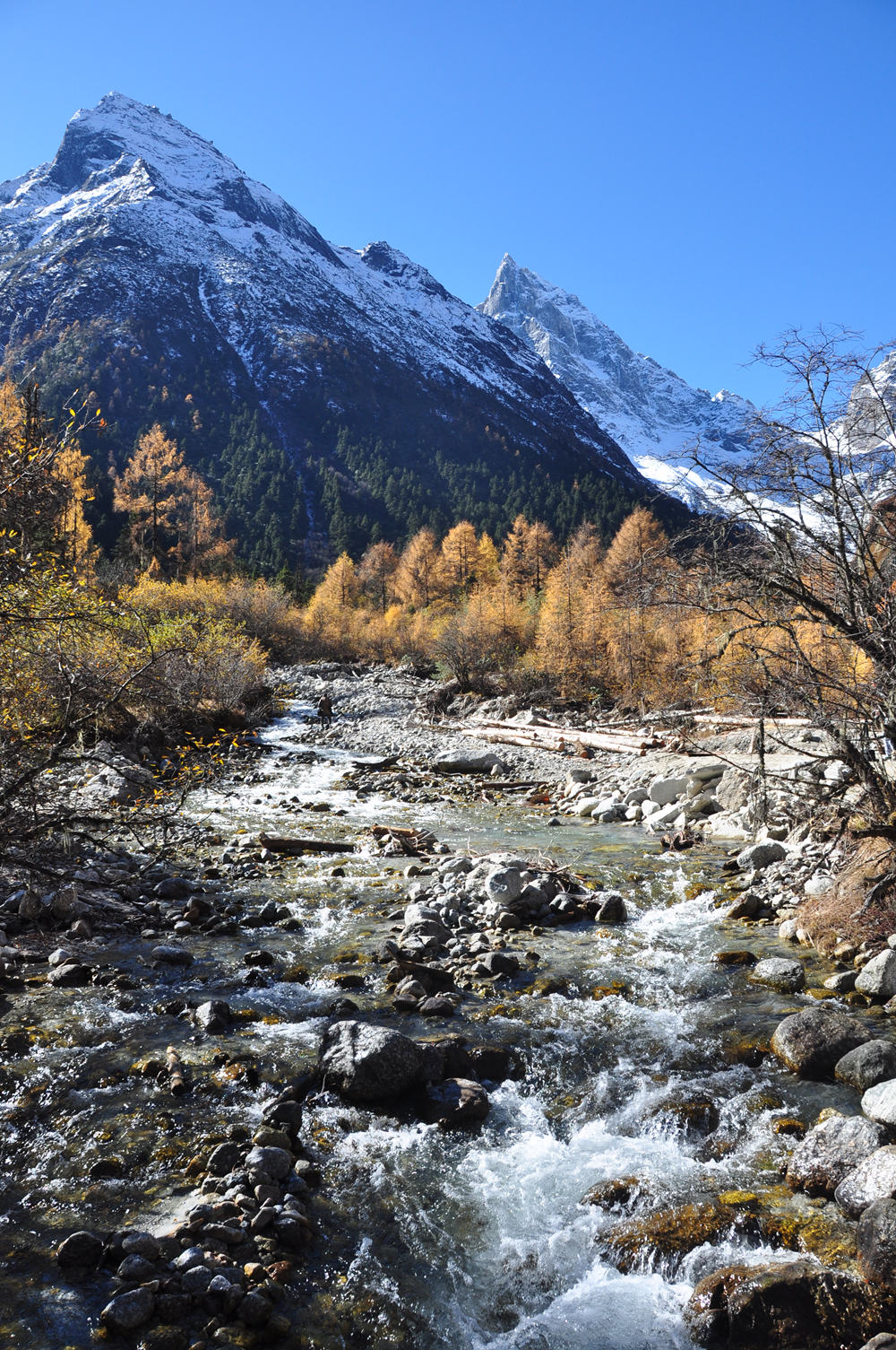 從雪山上流淌下來的小溪,在雪山和藍天的映襯下,分外漂亮。李仁奇 攝