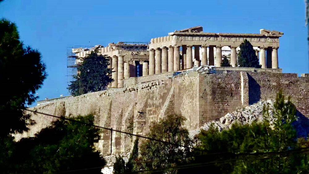 雅典衛(wèi)城中的帕特農(nóng)神廟,又名雅典娜神廟,是專門供奉雅典娜女神的神殿。距今2000多年的歷史,如今廟頂坍塌,雕像蕩然無存,浮雕剝蝕嚴重,但從屹立的廊柱中依然可見當年的風姿。李仁奇 攝