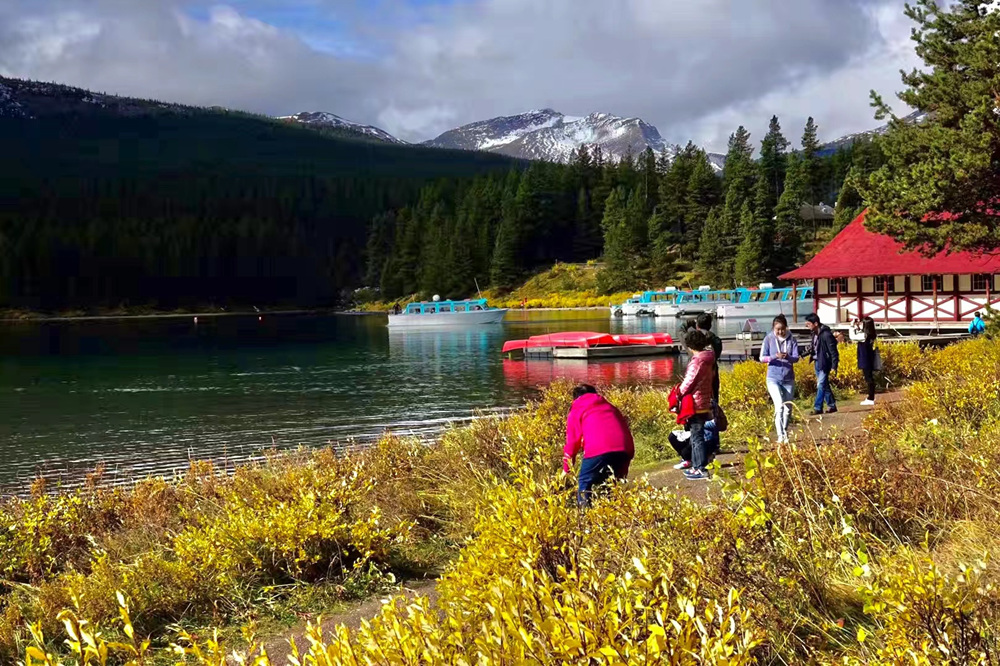 湖畔有許多步道,供游客沿湖游覽;湖邊的小木屋是游客駐足小憩的地方。李仁奇 攝