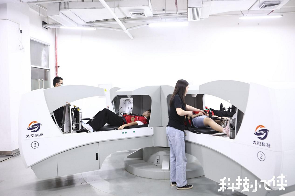 除了太空廢棄物處理實(shí)驗(yàn),航天訓(xùn)練體驗(yàn)也得到了孩子們的認(rèn)可?;顒?dòng)現(xiàn)場,短臂離心機(jī)、模擬失重床等設(shè)備模擬出了航天員的日常訓(xùn)練場景,還沒等講解老師解說完,就有不少小飛俠們歡呼雀躍,迫不及待地想體驗(yàn)航天員日常訓(xùn)練,旋轉(zhuǎn)、漂浮,小朋友們玩得不亦樂乎,在玩樂的同時(shí),也學(xué)習(xí)到了更多航天知識(shí)。