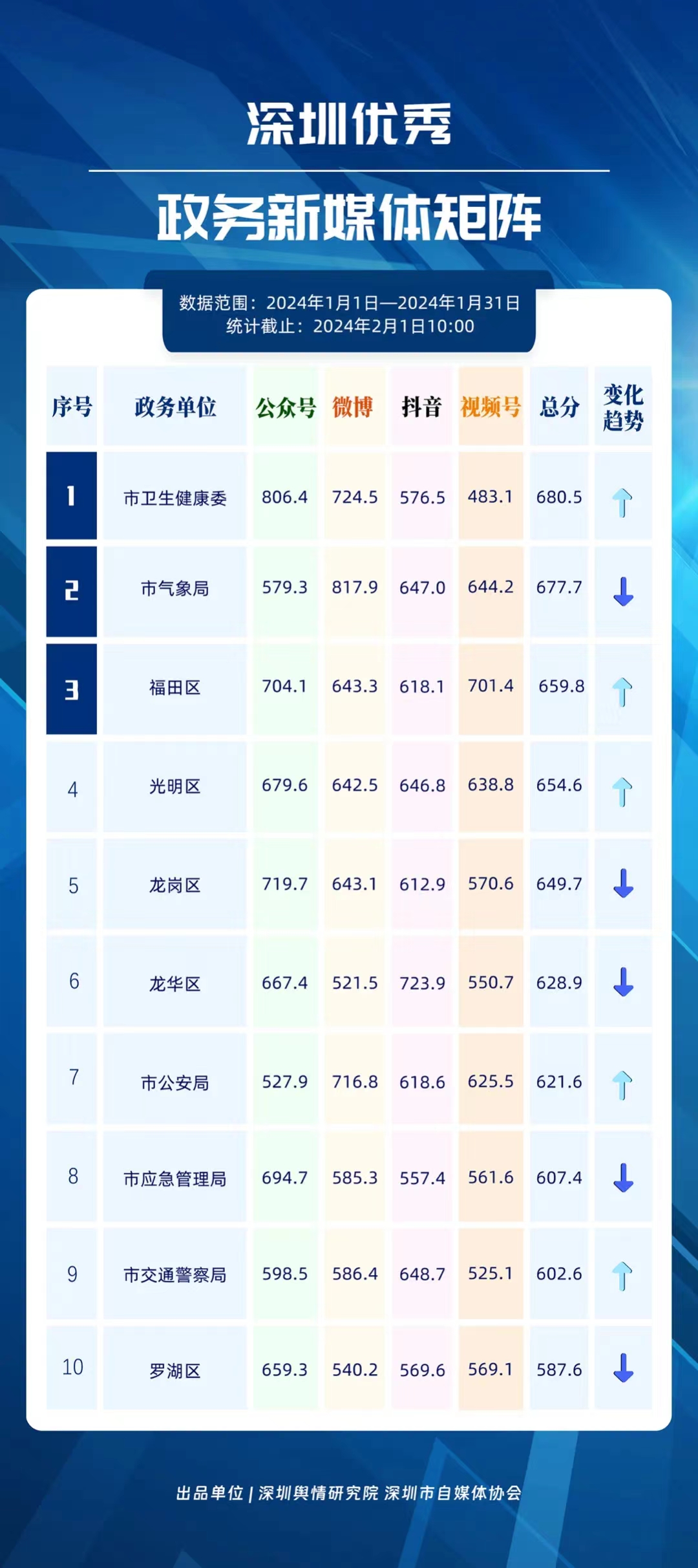 深圳新聞網(wǎng)2月9日訊(記者 陳曉君 實(shí)習(xí)生 張馳)2月8日,深圳輿情研究院、深圳市自媒體協(xié)會(huì)聯(lián)合推出《深圳優(yōu)秀政務(wù)新媒體矩陣》(2024年1月期),市衛(wèi)生健康委、市氣象局、福田區(qū)、光明區(qū)、龍崗區(qū)、龍華區(qū)、市公安局、市應(yīng)急管理局、市交通警察局、羅湖區(qū)的新媒體矩陣獲評(píng)“深圳優(yōu)秀政務(wù)新媒體矩陣”。這些矩陣在內(nèi)容發(fā)布、受眾互動(dòng)和信息傳播方面取得了較好成績(jī),并在深圳政務(wù)新媒體規(guī)范有序發(fā)展進(jìn)程中發(fā)揮著積極作用。
