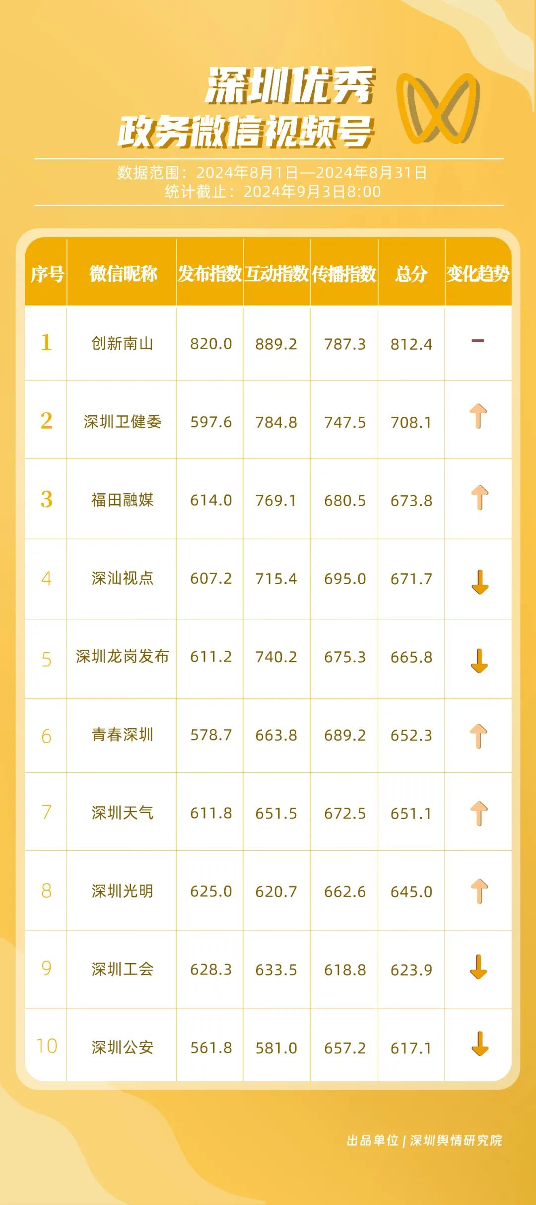 《深圳優(yōu)秀政務(wù)新媒體矩陣》2024年8月榜單如期而至,讓我們一同期待,哪些矩陣能夠在激烈的競爭中脫穎而出,成為引領(lǐng)政務(wù)新媒體服務(wù)與創(chuàng)新的典范。