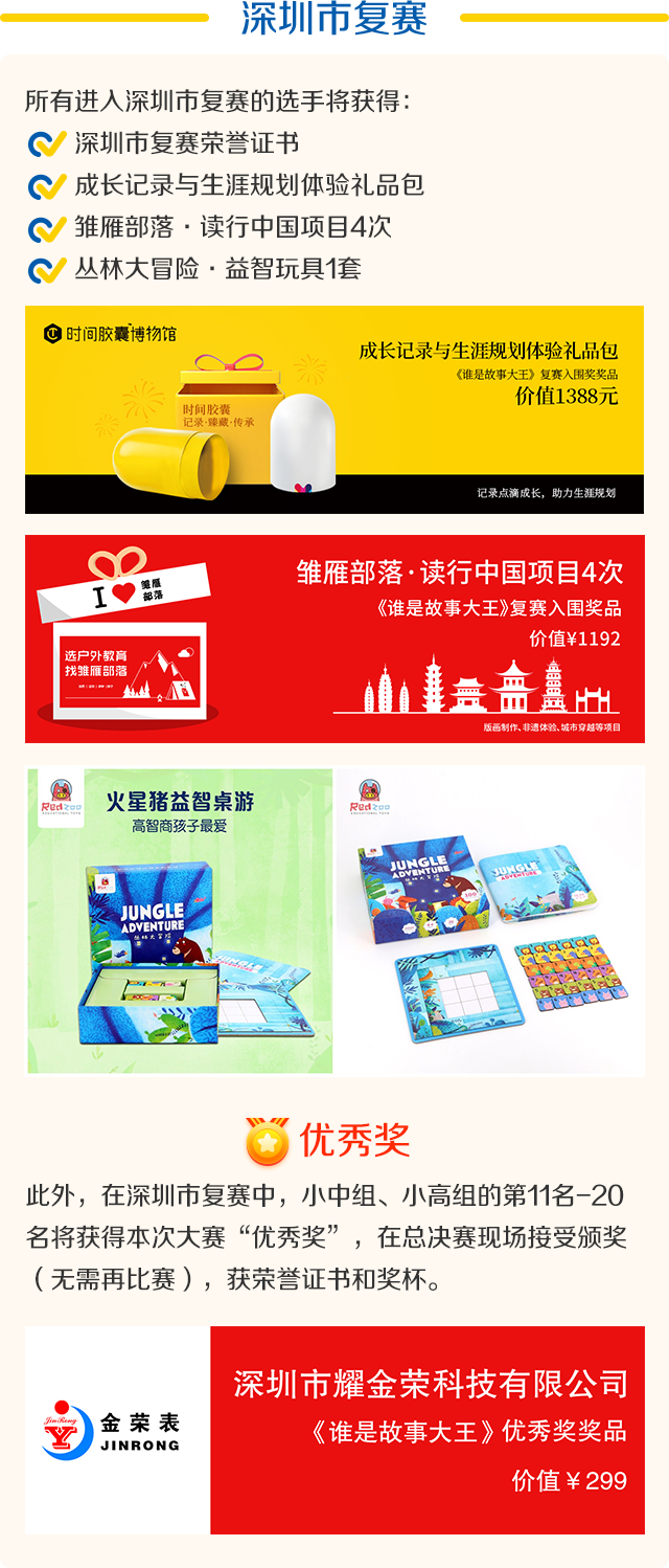 讓閱讀成為動人的風(fēng)景,讓故事的魅力感動深圳。為助力建設(shè)良好的青少年閱讀環(huán)境,激發(fā)學(xué)生閱讀興趣,倡導(dǎo)親子閱讀,共建和諧家庭關(guān)系。2020年,第二十一屆深圳讀書月主題活動“誰是故事大王·第四季”在共青團(tuán)深圳市委員會、深圳市關(guān)愛行動組委會辦公室的指導(dǎo)下再出發(fā)。更長的活動周期,更豐富的參與形式,更專業(yè)的賽制,“誰是故事大王·第四季”等你來解鎖與挑戰(zhàn)!